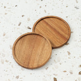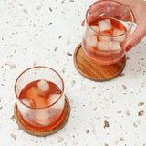 To keep things tidy (and your table ring-free), set your cold drinks down on these 100% acacia wood coasters. Perfect addition to the Ethan + Ashe Rocks Glasses (pictured below-not included.)